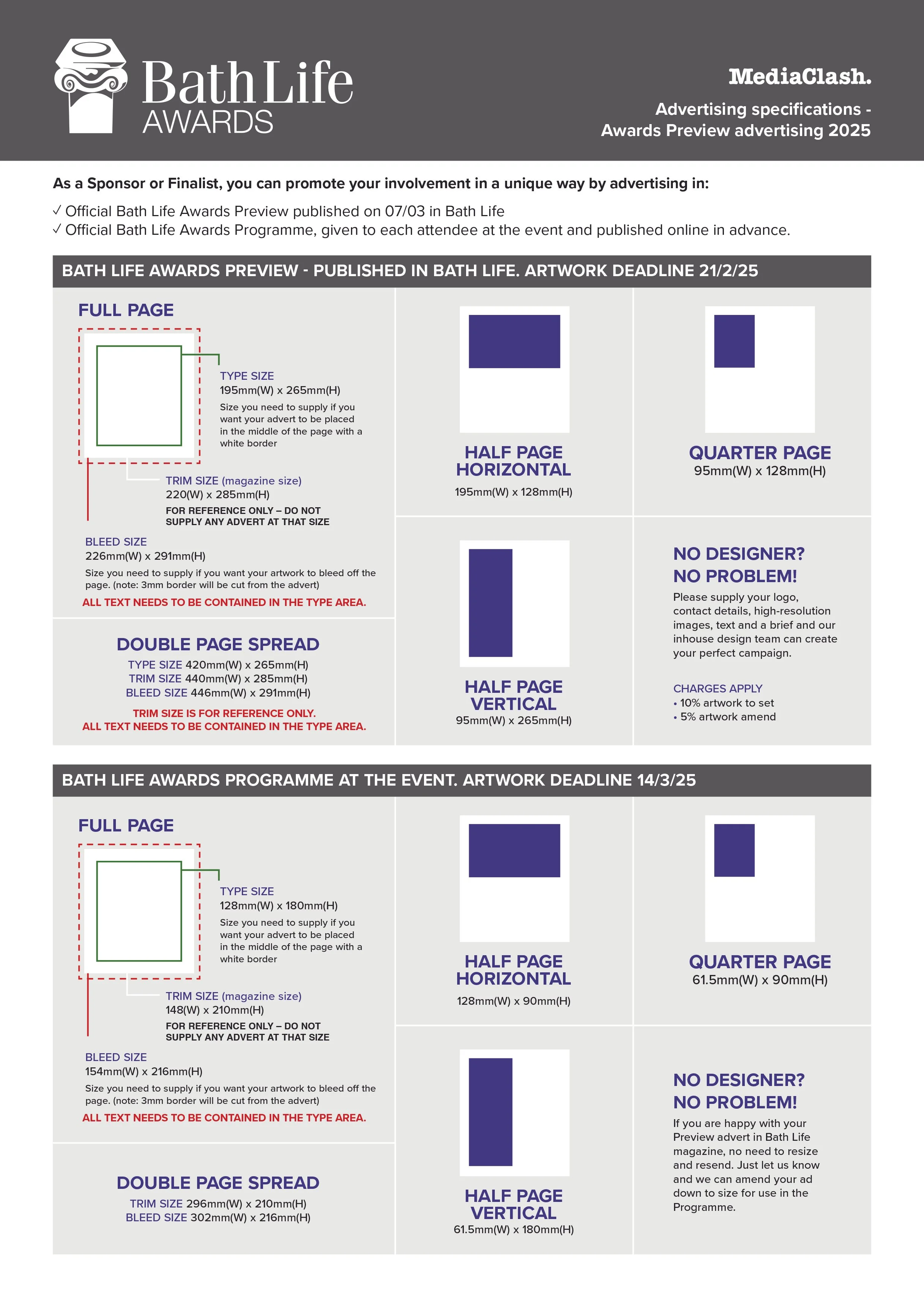 ✓ Official Bath Life Awards Programme, given to each attendee at the event and published online in advance